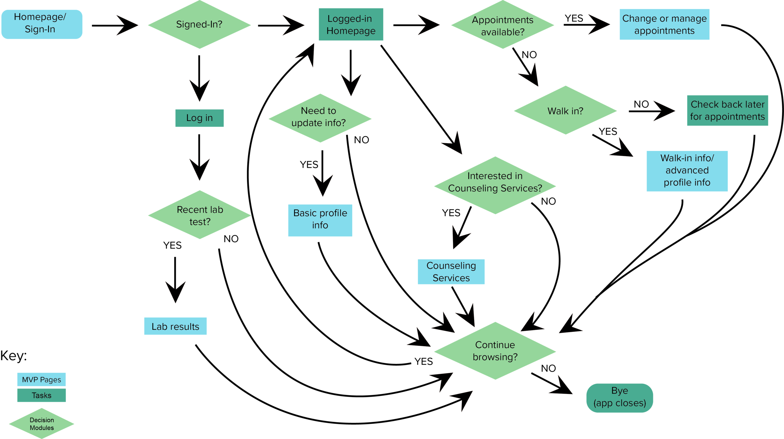 We believe that by creating a health center application for Cal Poly students, we will decrease the amount of complaints and improve the overall health center experience for the user. We will know this to be true when we see a decrease in digital traffic and receive positive feedback from our users.