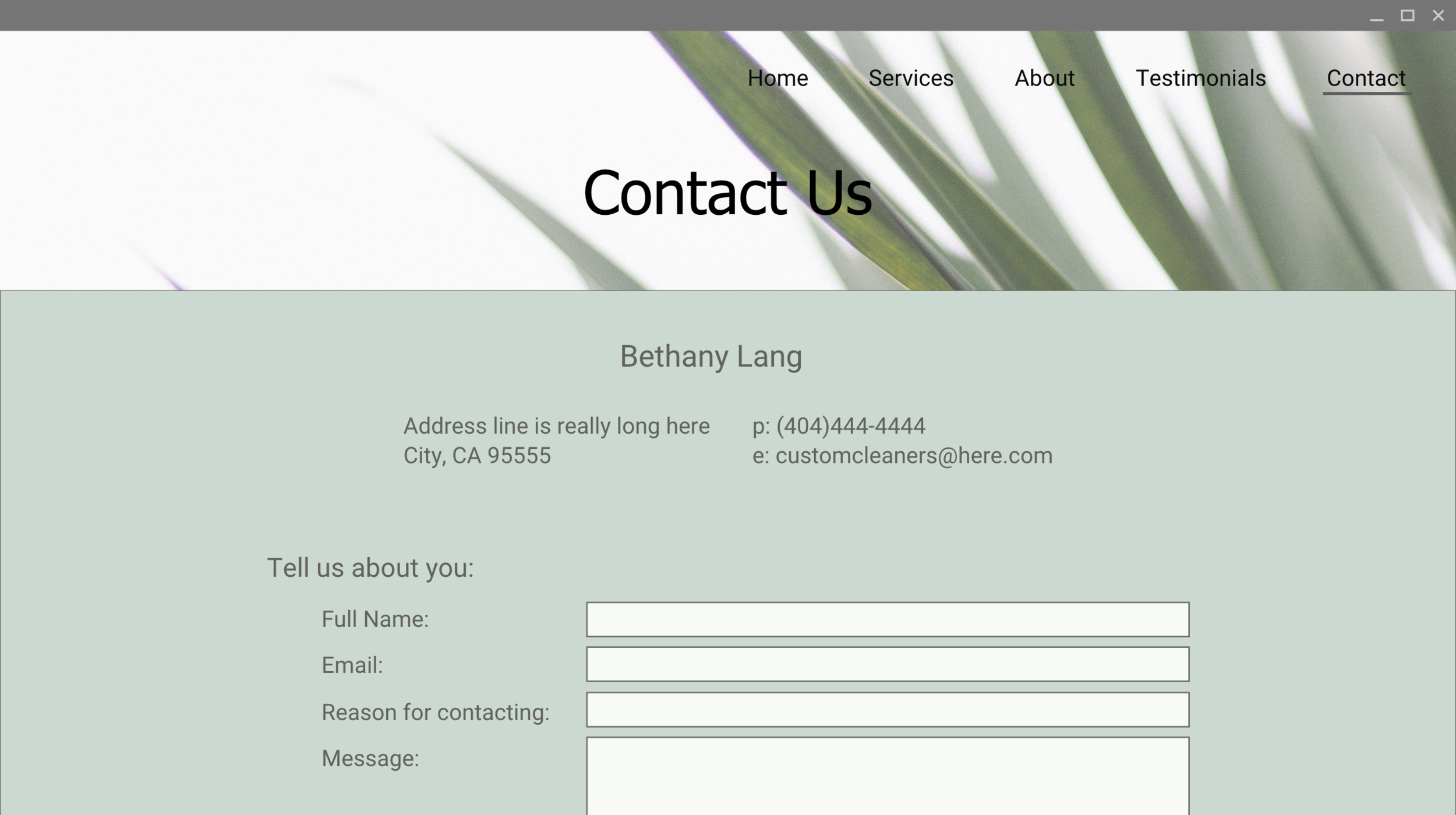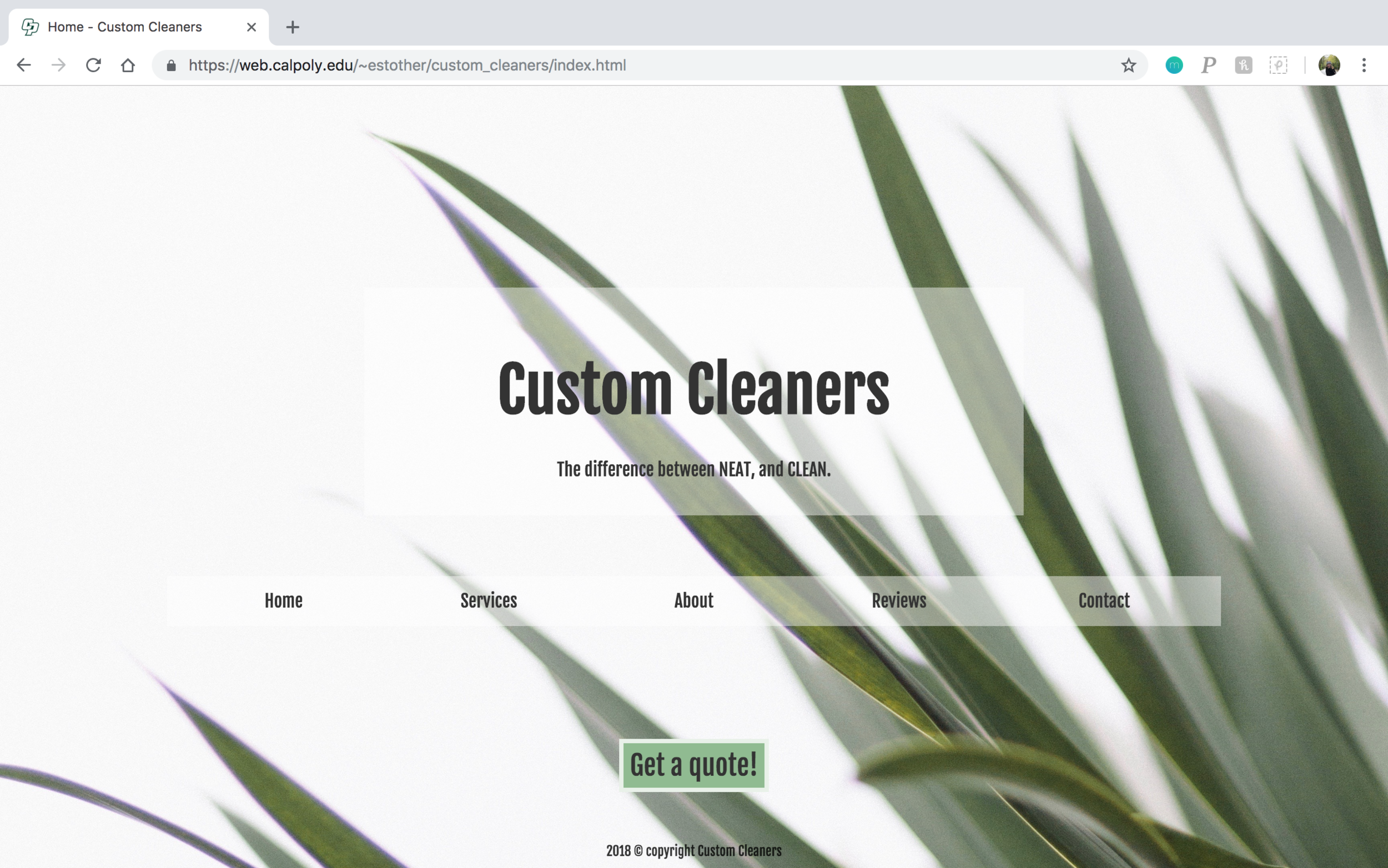 Custom Cleaners is a cleaning service that offers a clean tailored to each individual client. The client approached my group with a desire to have a website that is inviting and neat. They wanted to draw customers in and provide a place where all the company information would be easily accessible.