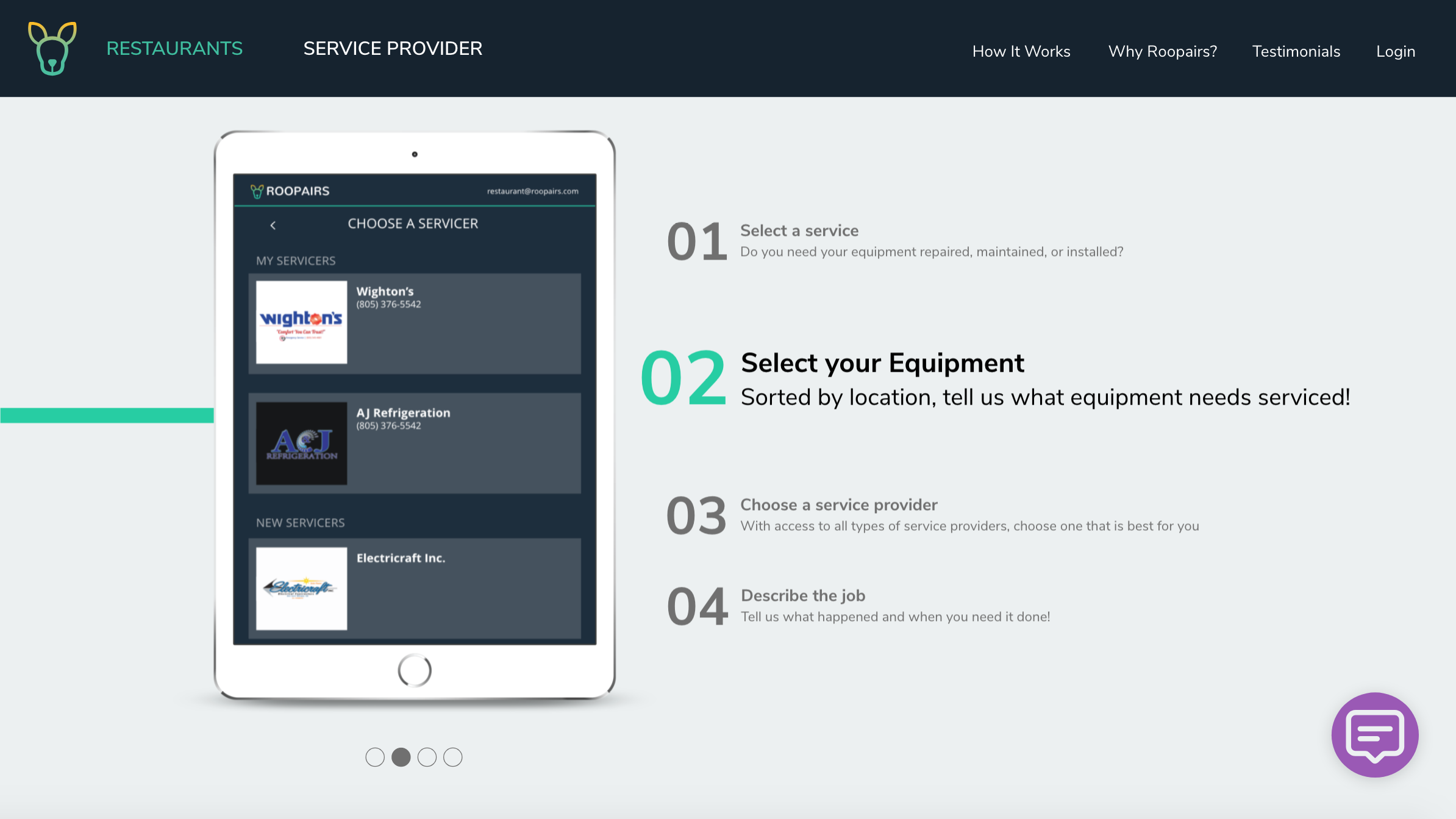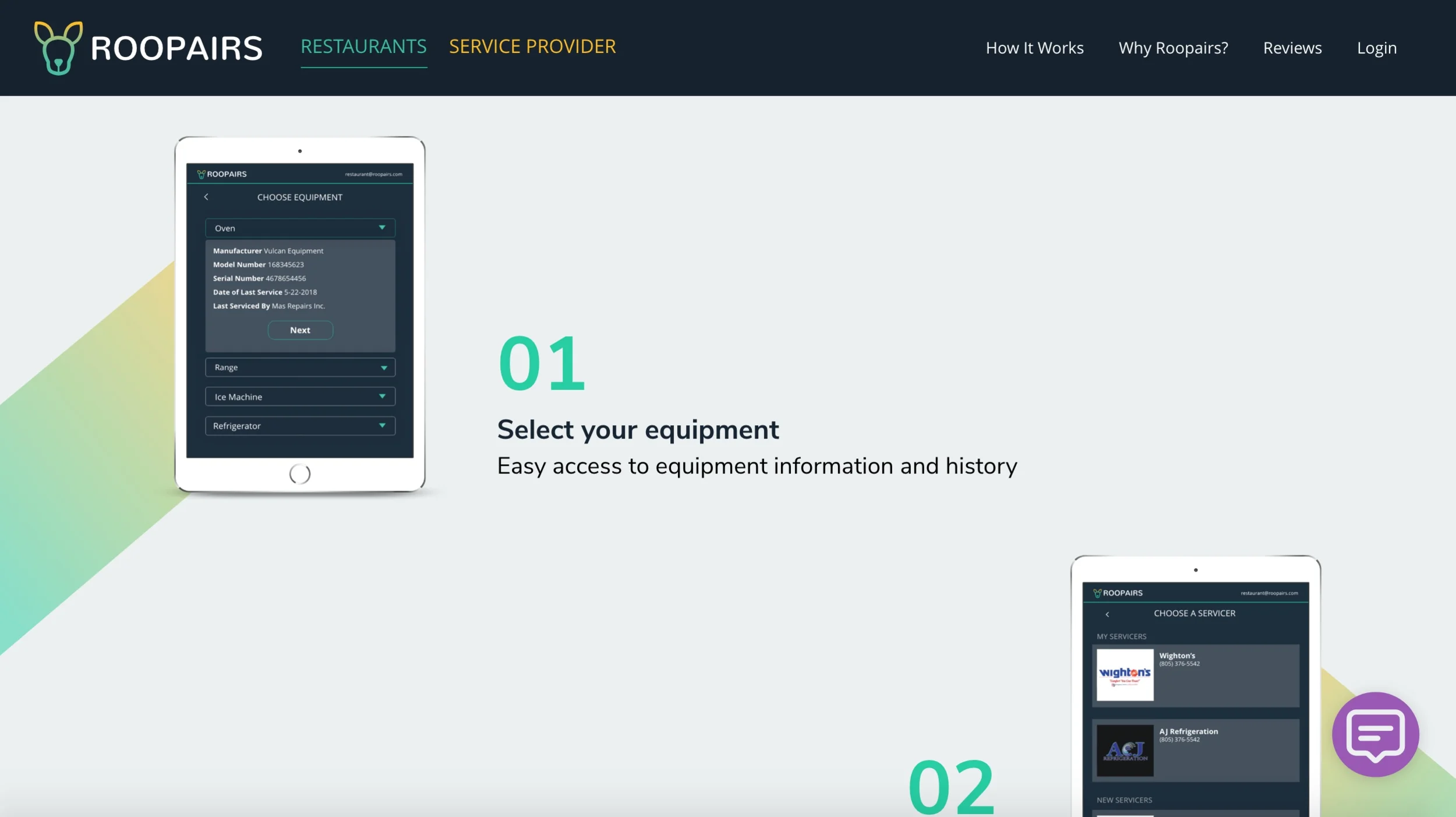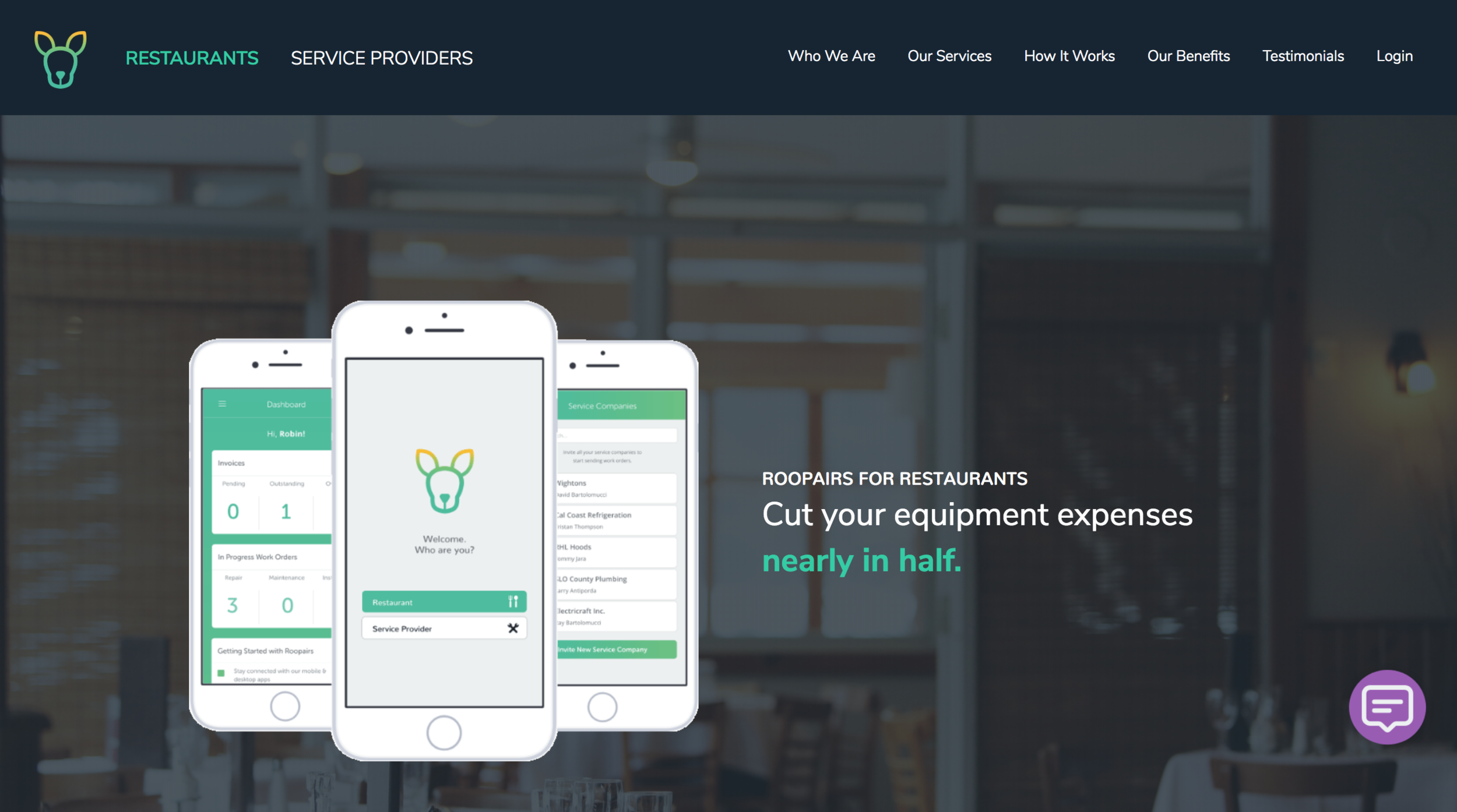 Roopairs is a software start-up that connects restaurants with service providers. Their application has two versions, one directed toward restauranteurs and the other to service providers. The task was to create a marketing website that draws in potential customers by connecting with them over their business’ needs.